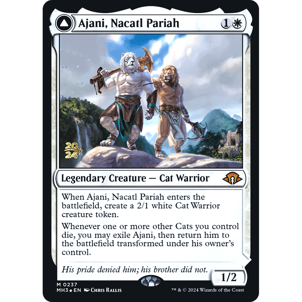 PredhWhen Ajani, Nacatl Pariah enters the battlefield, create a 2/1 white Cat Warrior creature token.
