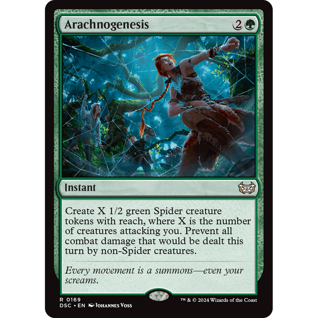 PredhCreate X 1/2 green Spider creature tokens with reach, where X is the number of creatures attacking you. Prevent all combat damage that would be dealt this turn by non-Spider creatures.