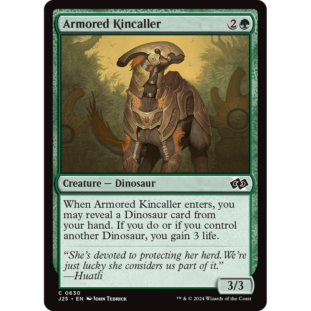 PredhWhen Armored Kincaller enters, you may reveal a Dinosaur card from your hand. If you do or if you control another Dinosaur, you gain 3 life.