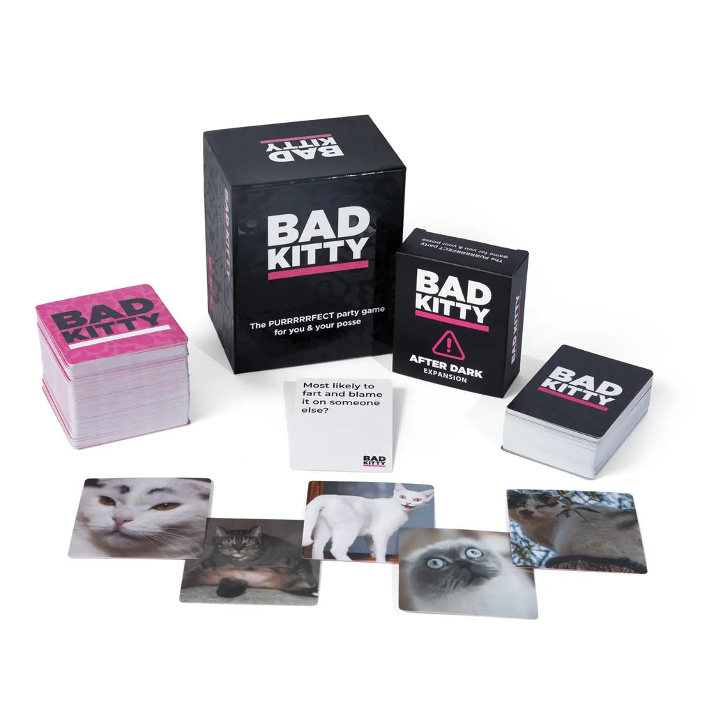 Get the Party Purring with BAD KITTY, the awesome adult Party Game of hilarious, weird, embarrassing cats and the bad behaviors they indulge in.