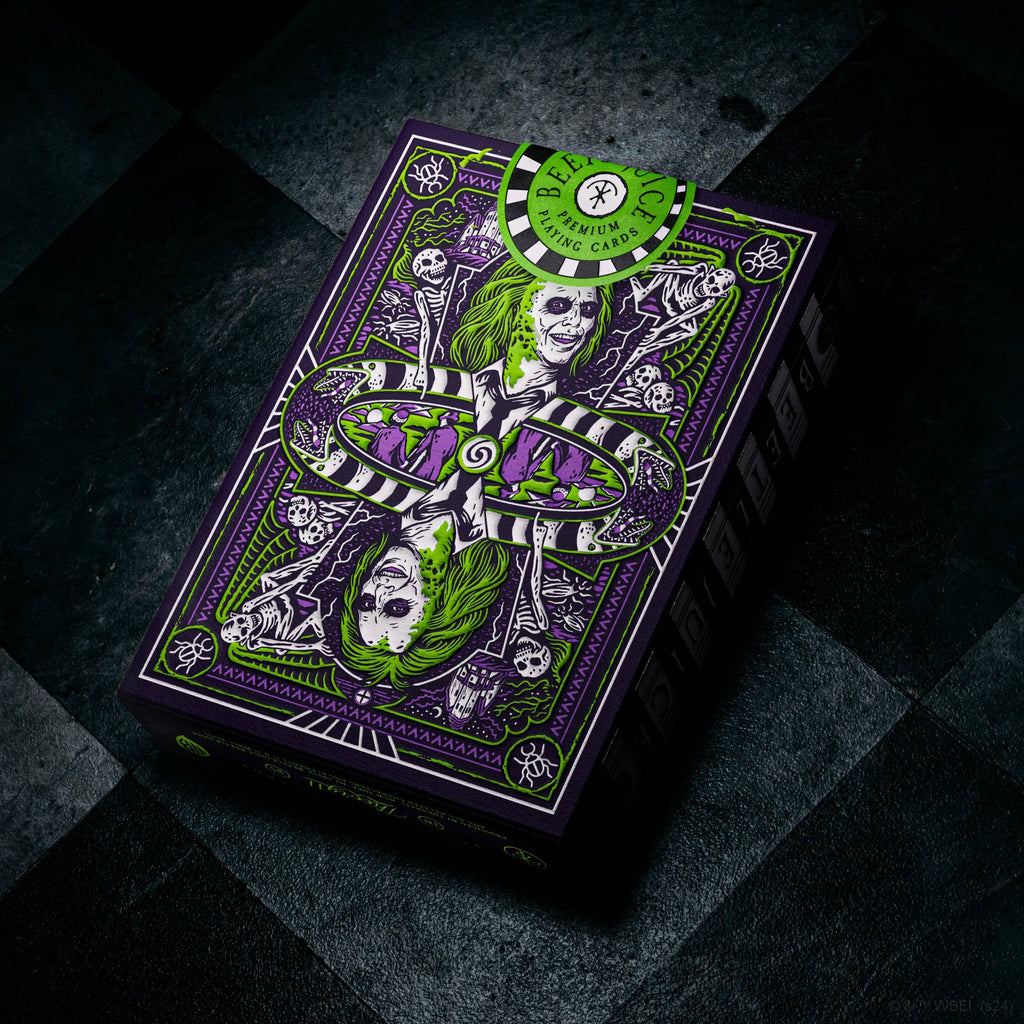 Go ahead, make our millennium with a must-have deck of cards for fans of the original classic and the long-awaited sequel! Featuring vibrant slime green and haunting purple accents, Beetlejuice is back from the dead and ready to exorcize your game nights!