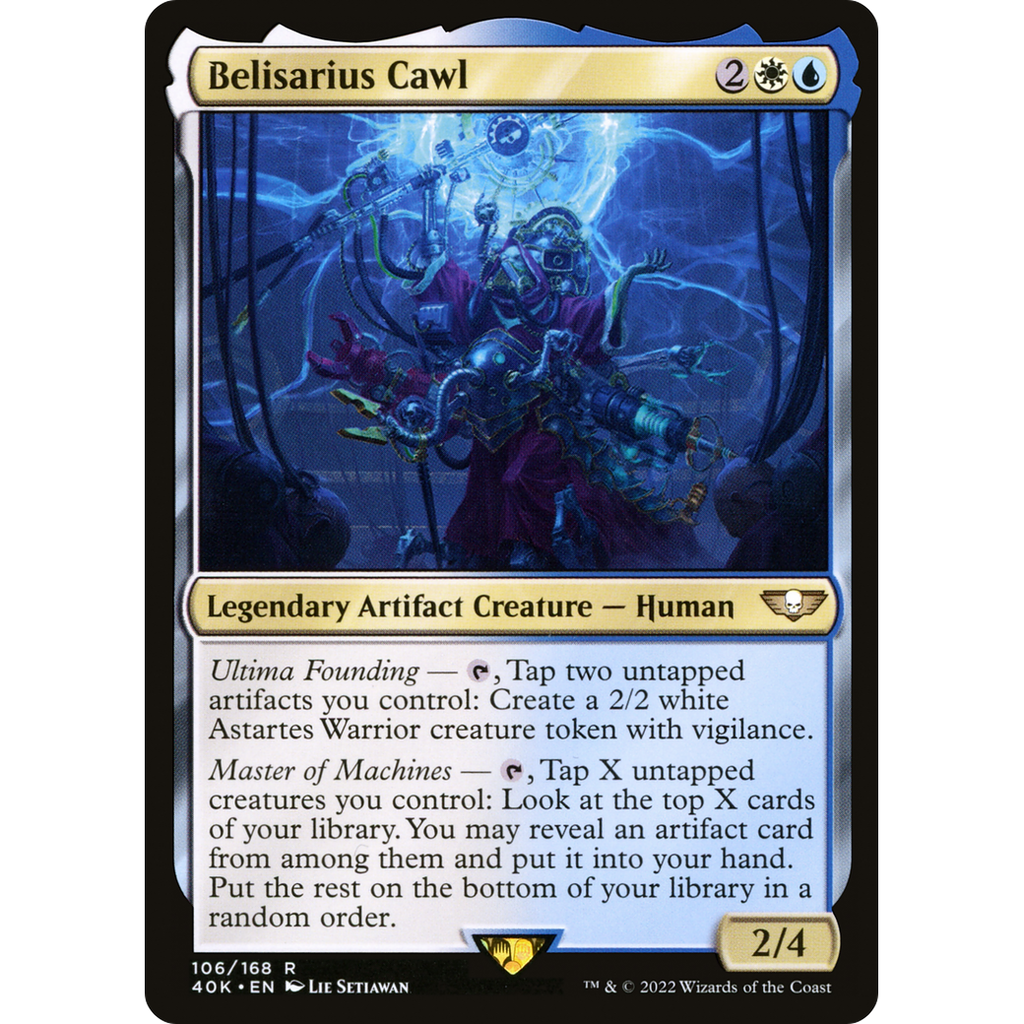 , Tap X untapped creatures you control: Look at the top X cards of your library. You may reveal an artifact card from among them and put it into your hand. Put the rest on the bottom of your library in a random order.