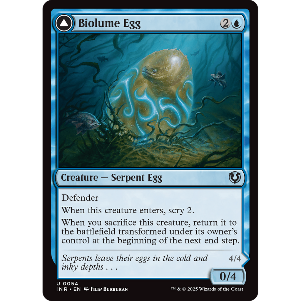 When you sacrifice Biolume Egg, return it to the battlefield transformed under its owner's control at the beginning of the next end step.