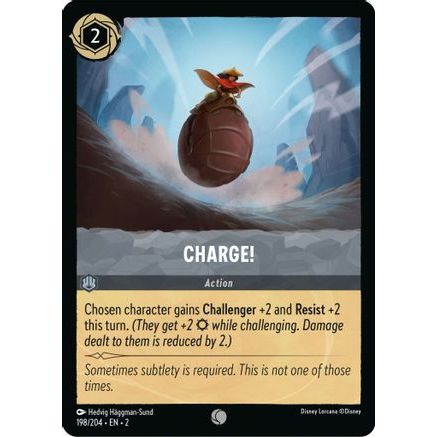 Chosen character gains Challenger +2 and Resist +2 this turn. (They get +2 Strength while challenging. Damage dealt to them is reduced by 2.)
