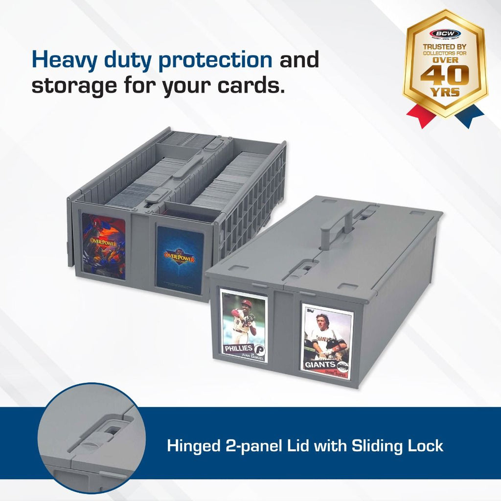 The BCW Card Bin is a premium trading card storage solution designed for collectors, gamers, and sports card enthusiasts who need durability, organization, and portability. Unlike traditional cardboard shoe boxes, this heavy-duty storage bin is made from acid-free, durable plastic, ensuring long-term protection for your valuable collection. With a 1600-card capacity, it is perfect for storing Pokémon, Magic: The Gathering (MTG), sports cards, and other trading card game (TCG) collections. The two-row design accommodates loose cards, magnetic card holders, toploaders, and deck boxes, offering versatile storage for all types of trading cards.