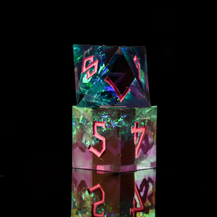 Hand-crafted from beginning to end, our sharp-edged resin dice feature gorgeously hand-painted numbers. These dice are ideal for any tabletop RPG game and are sure to impress at your upcoming session!
