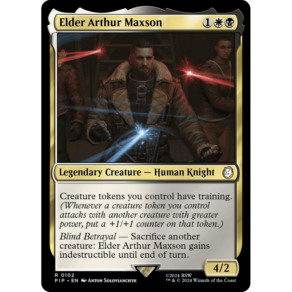 Blind Betrayal — Sacrifice another creature: Elder Arthur Maxson gains indestructible until end of turn.