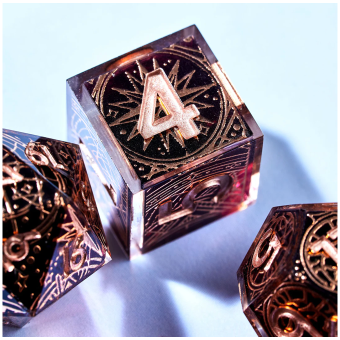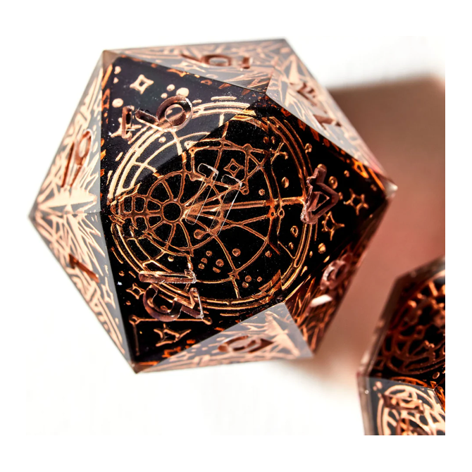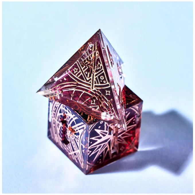- Sharp-edged construction allows for more randomized rolls when compared to traditional rounded-edge RPG dice.