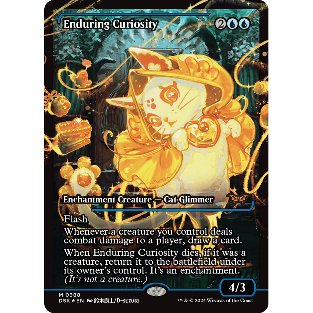 When Enduring Curiosity dies, if it was a creature, return it to the battlefield under its owner's control. It's an enchantment. (It's not a creature.)