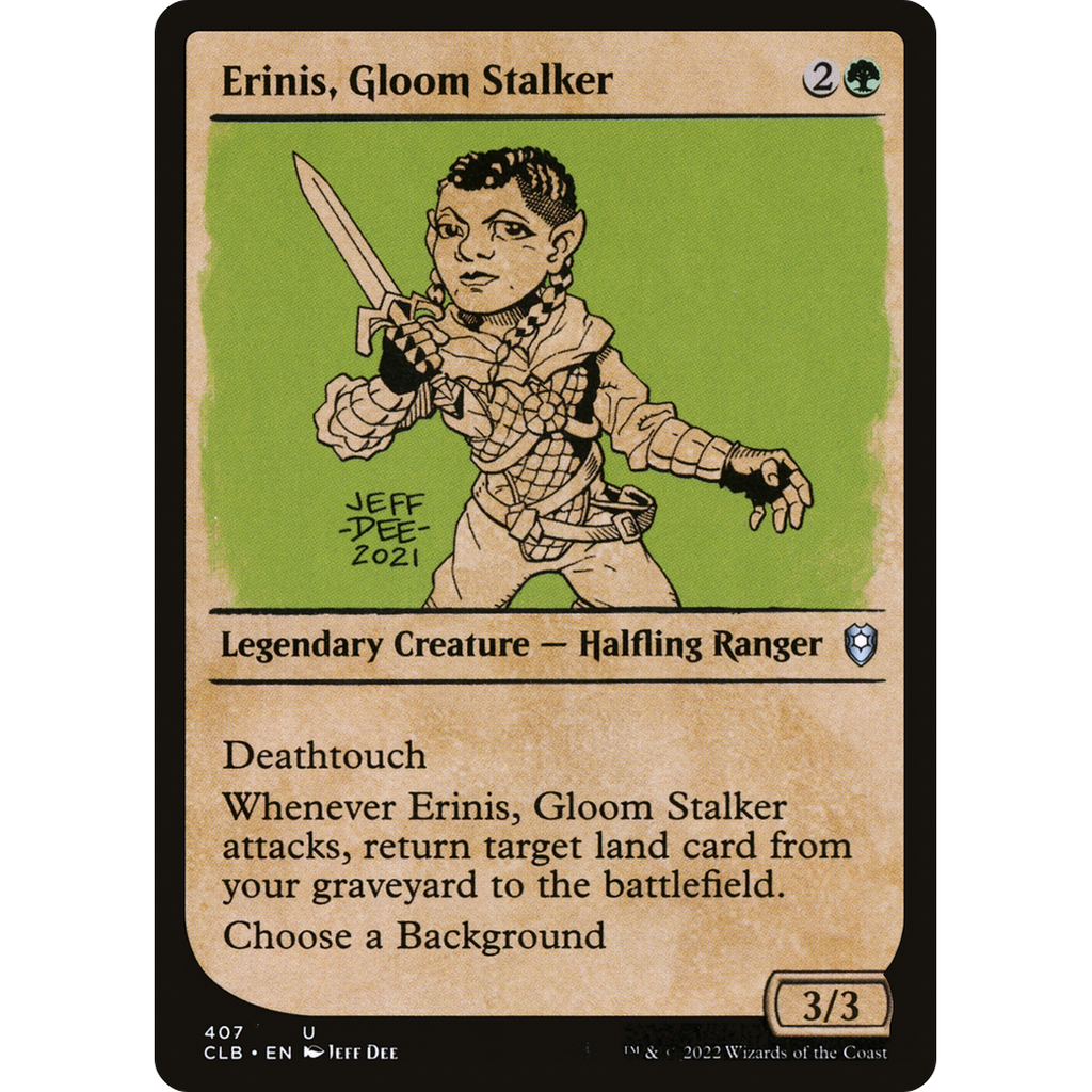 Whenever Erinis attacks, return target land card from your graveyard to the battlefield.