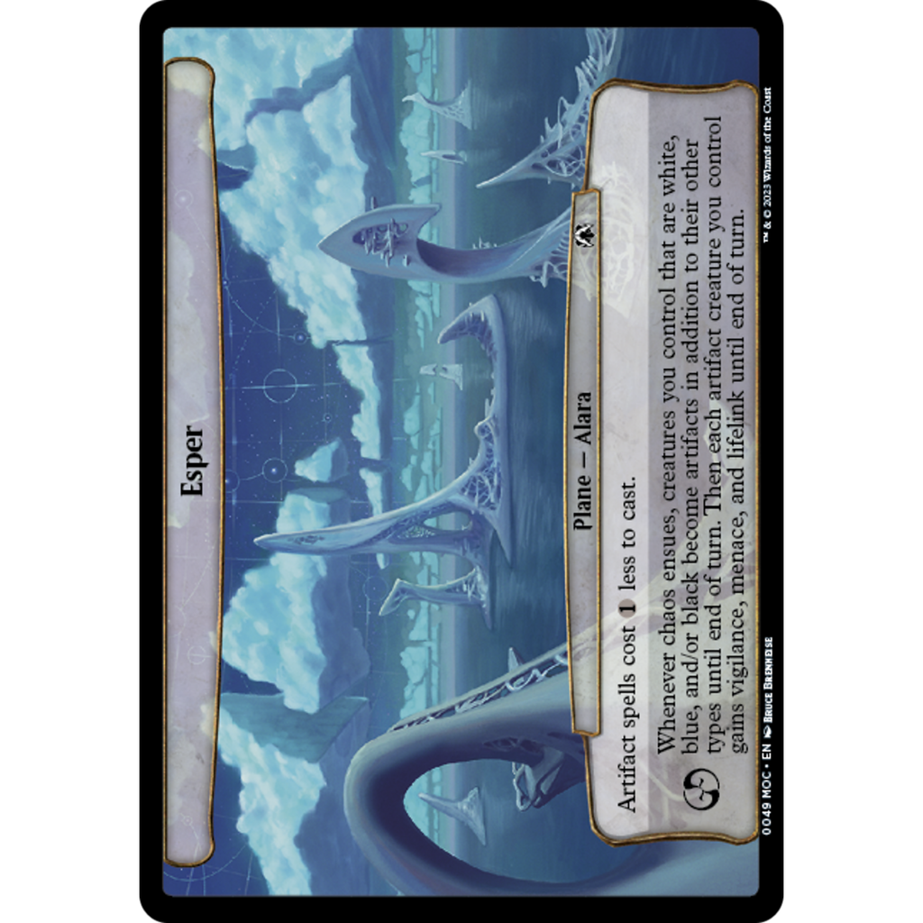 Whenever chaos ensues, creatures you control that are white, blue, and/or black become artifacts in addition to their other types until end of turn. Then each artifact creature you control gains vigilance, menace, and lifelink until end of turn.