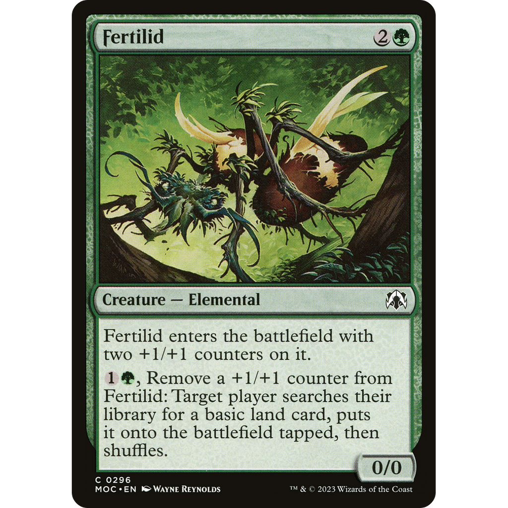, Remove a +1/+1 counter from this creature: Target player searches their library for a basic land card, puts it onto the battlefield tapped, then shuffles.