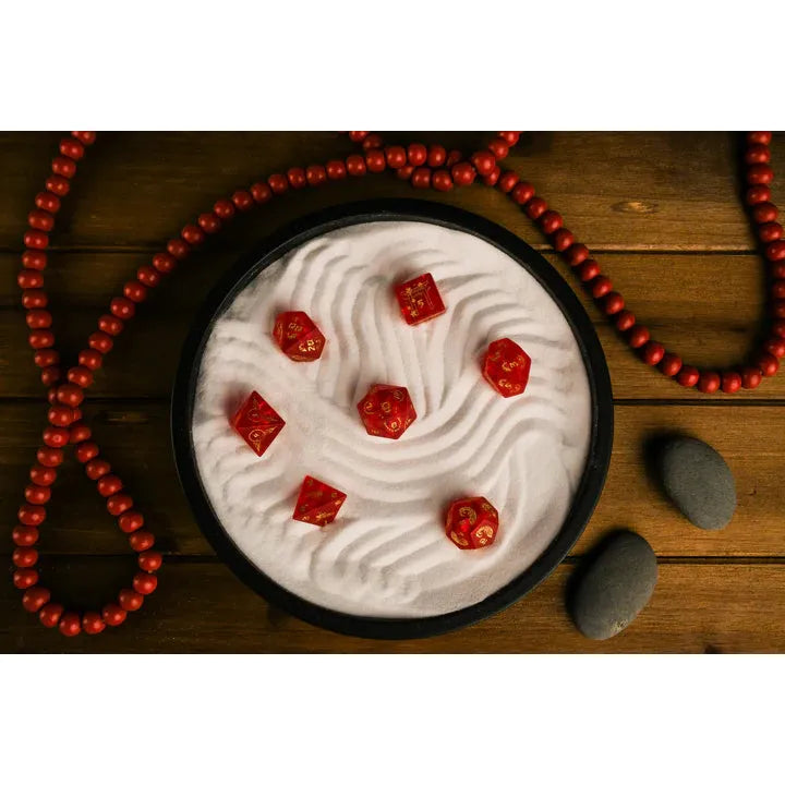 Each die is hand-carved from pure gemstone and polished in a proper tumbler. Designs are then engraved into each side and hand-painted. Gemstone dice are never guaranteed to have a perfectly balanced weight; however, each of our dice sets are always well-weighted and well-balanced.