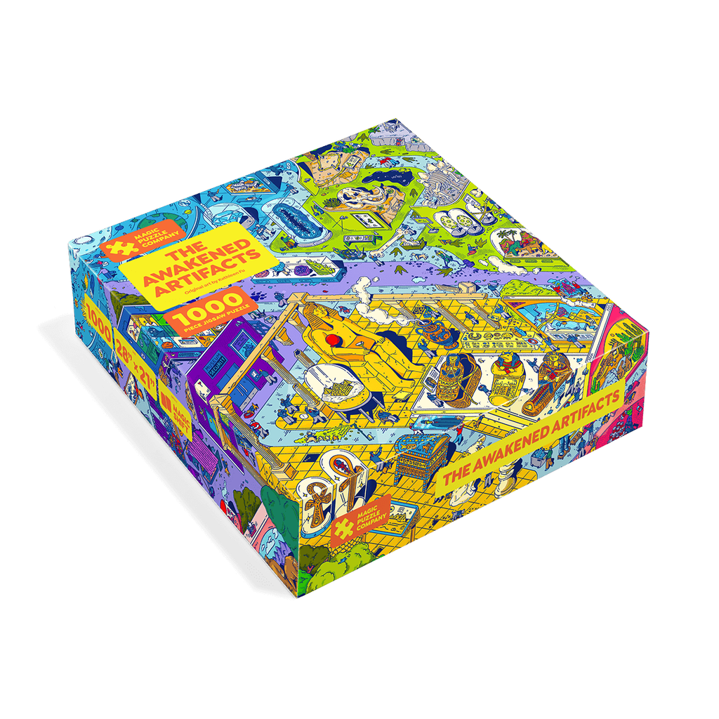 The Awakened Artifacts is a 1000-piece jigsaw puzzle that does a magic trick when you solve it. This puzzle features original art by Kathleen Fu packed with hundreds of tiny details and easter eggs to discover. We've designed (and playtested) our puzzles to make the experience as smooth and engaging as possible from the moment you open the box to the moment you place the last piece of the last segment.