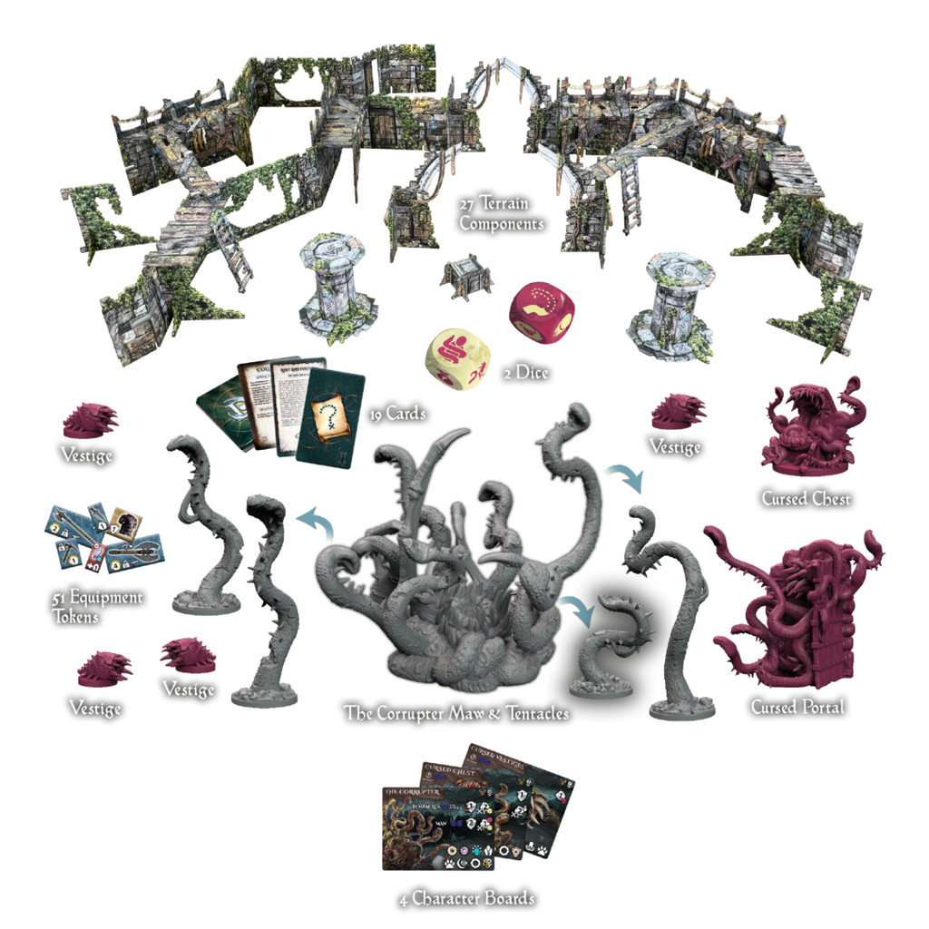 This narrative expansion for Maladum introduces new otherworldly betentacled monstrosities to test your mettle. All of the new gameplay elements can be experienced through a new narrative campaign or integrated into your other games.