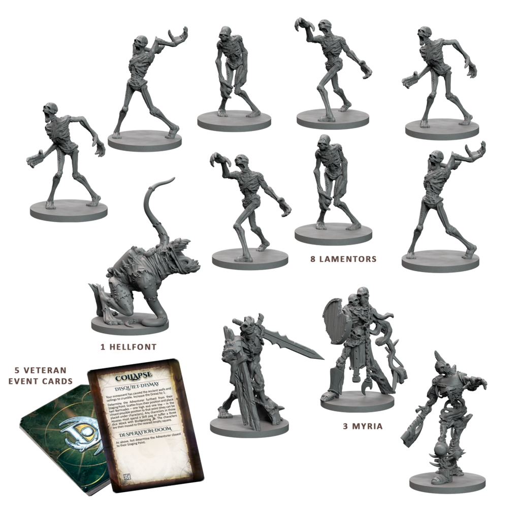 The Revenant Retribution pack is ideal for players looking for a challenge! Increase the difficulty of your Maladum quests with these additional Adversaries. They are accompanied by a set of Veteran Event Cards that will introduce them to your games. They can be used in games of any size, but are especially recommended for large and/or multi-player games.