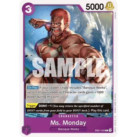 [On Play] If your Leader's type includes "Baroque Works", up to 1 of your Leader or Character cards gains +1000 power during this turn.