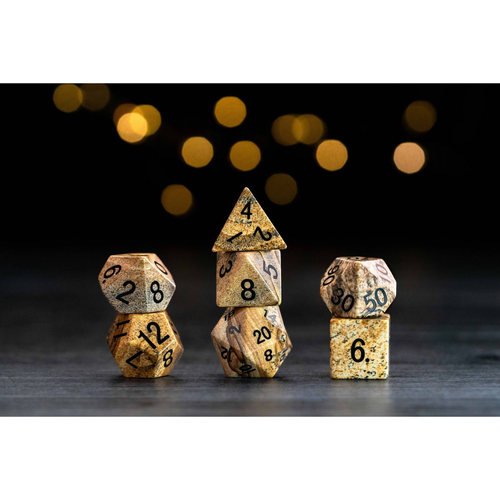 FanRoll is proud to announce an upgrade to our most premium gemstone dice. Available in four unique stones, each of these pieces was hand mined from the hands of Dwarves and hand polished to make the perfect addition to your table. With their hefty feel and captivating look, this gemstone dice set is the perfect upgrade for any gaming table.