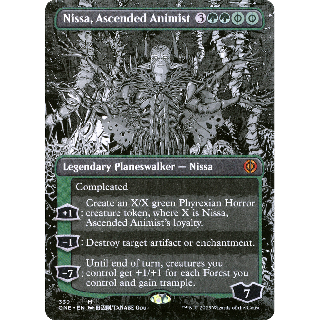 +1: Create an X/X green Phyrexian Horror creature token, where X is Nissa's loyalty.