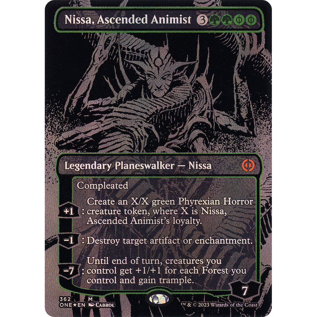 +1: Create an X/X green Phyrexian Horror creature token, where X is Nissa's loyalty.