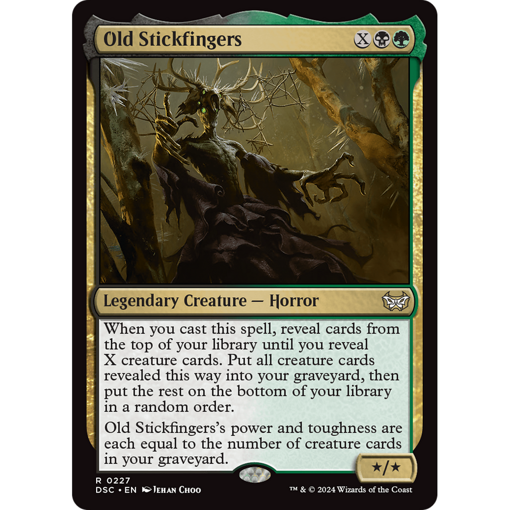 Old Stickfingers's power and toughness are each equal to the number of creature cards in your graveyard.