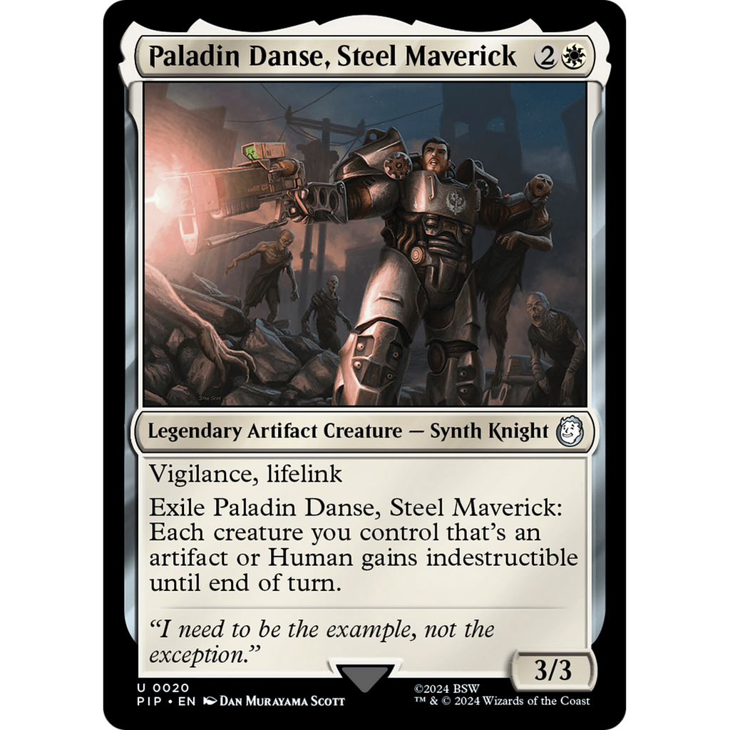 Exile Paladin Danse: Each creature you control that's an artifact or Human gains indestructible until end of turn.