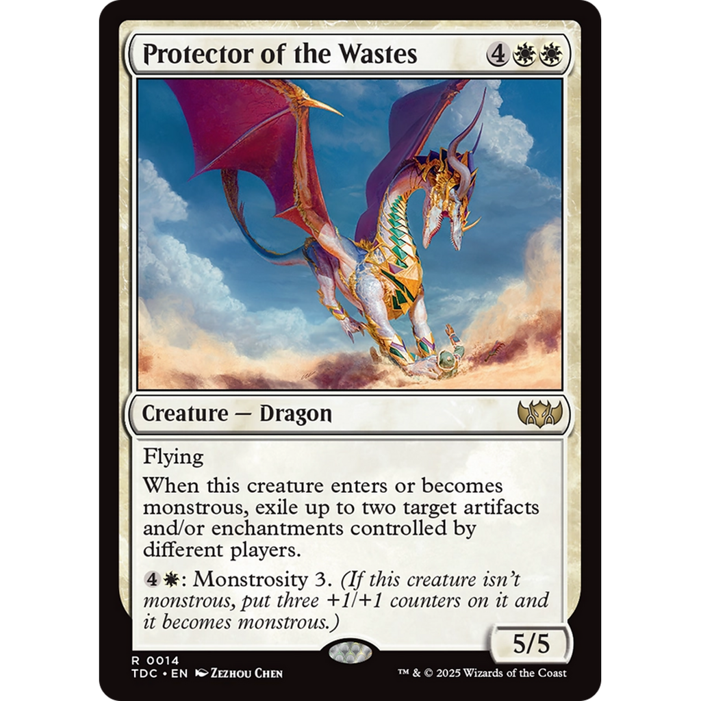 When this creature enters or becomes monstrous, exile up to two target artifacts and/or enchantments controlled by different players.