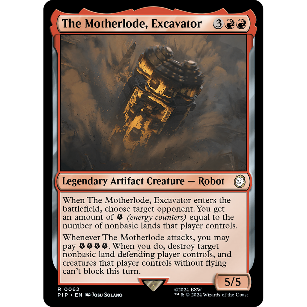 Whenever The Motherlode attacks, you may pay . When you do, destroy target nonbasic land defending player controls, and creatures that player controls without flying can't block this turn.
