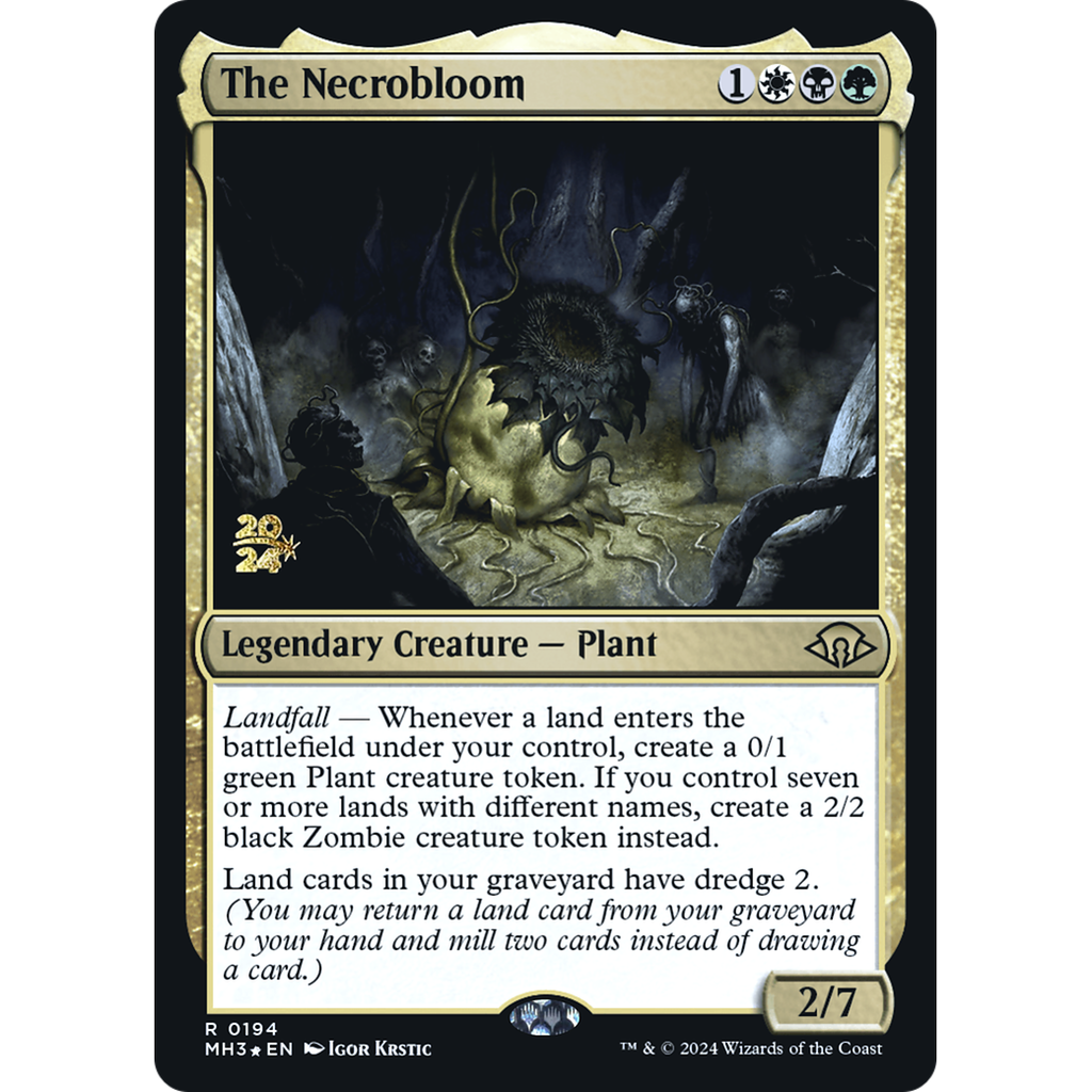 PredhLandfall — Whenever a land you control enters, create a 0/1 green Plant creature token. If you control seven or more lands with different names, create a 2/2 black Zombie creature token instead.