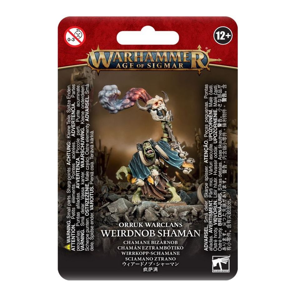 This multipart plastic kit builds one Weirdnob Shaman, a bizarre and unpredictable wizard for your Orruk Warclans armies in games of Warhammer Age of Sigmar. As they twist, twitch, and gibber, they call down the power of Gorkamorka upon your foes.